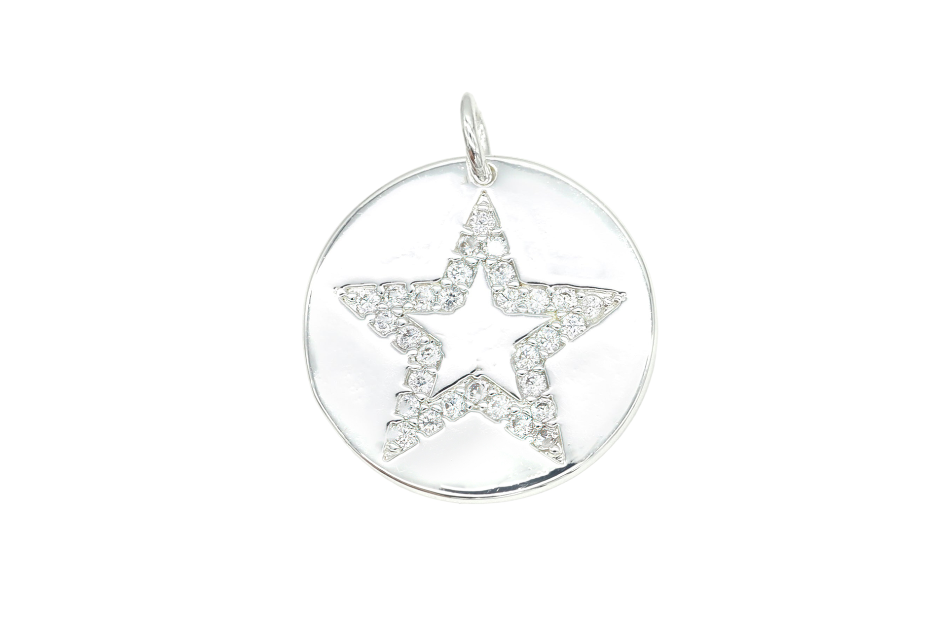 Star charm with pave Cubic Zirconia represents a divine force of good and positive energy.