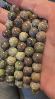 Rainforest Agate is a type of chalcedony, often characterized by green, brown, and sometimes reddish inclusions that resemble forest landscapes, hence its name.  Rainforest Agate is believed to calm the mind, reduce anxiety, and alleviate stress by promoting a sense of inner peace.  It can help in balancing emotional energy, encouraging patience, and stabilizing moods.  It’s linked to the heart chakra, it encourages love, compassion, and emotional healing.