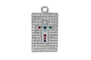Silver Multicolor Cross Square Charm